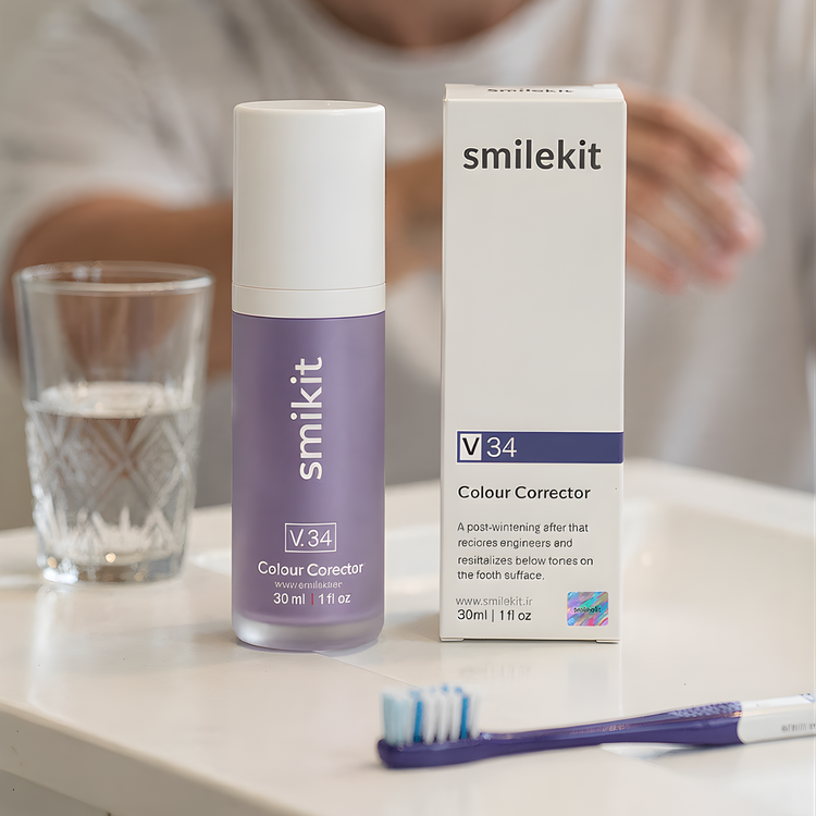 خمیر دندان بنفش V34 اسمایل کیت | سفیدکننده فوری بدون حساسیت