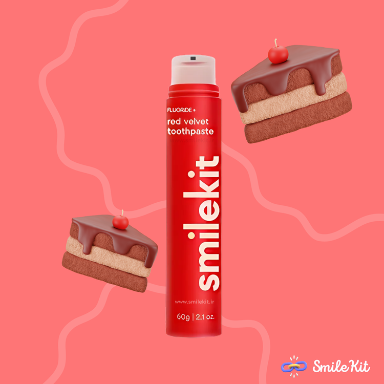 تجربهای لوکس و خوشمزه در هر بار مسواک زدن! خمیر دندان طعمدار رد وِلوت Smilekit با رایحهای الهامگرفته از کیک قرمز مخملی، نهتنها حس تازگی، بلکه طعمی خاص و خاصپسند را برای شما فراهم میکند.